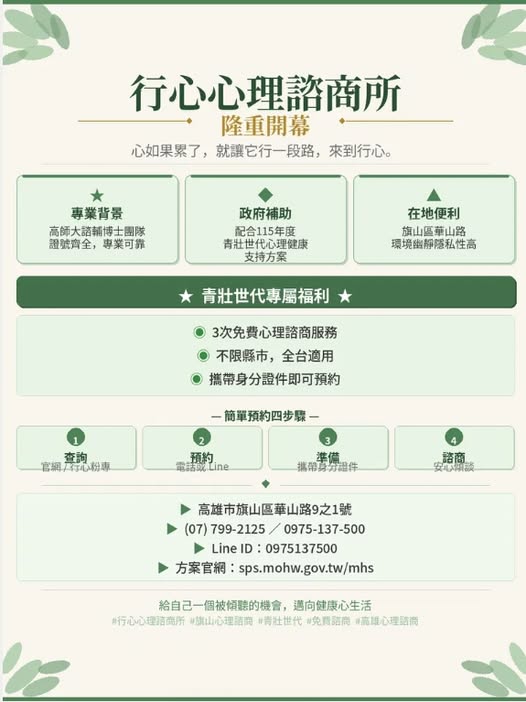 大家敲碗許久的【行心心理諮商所】已經隆重開幕囉!![]()